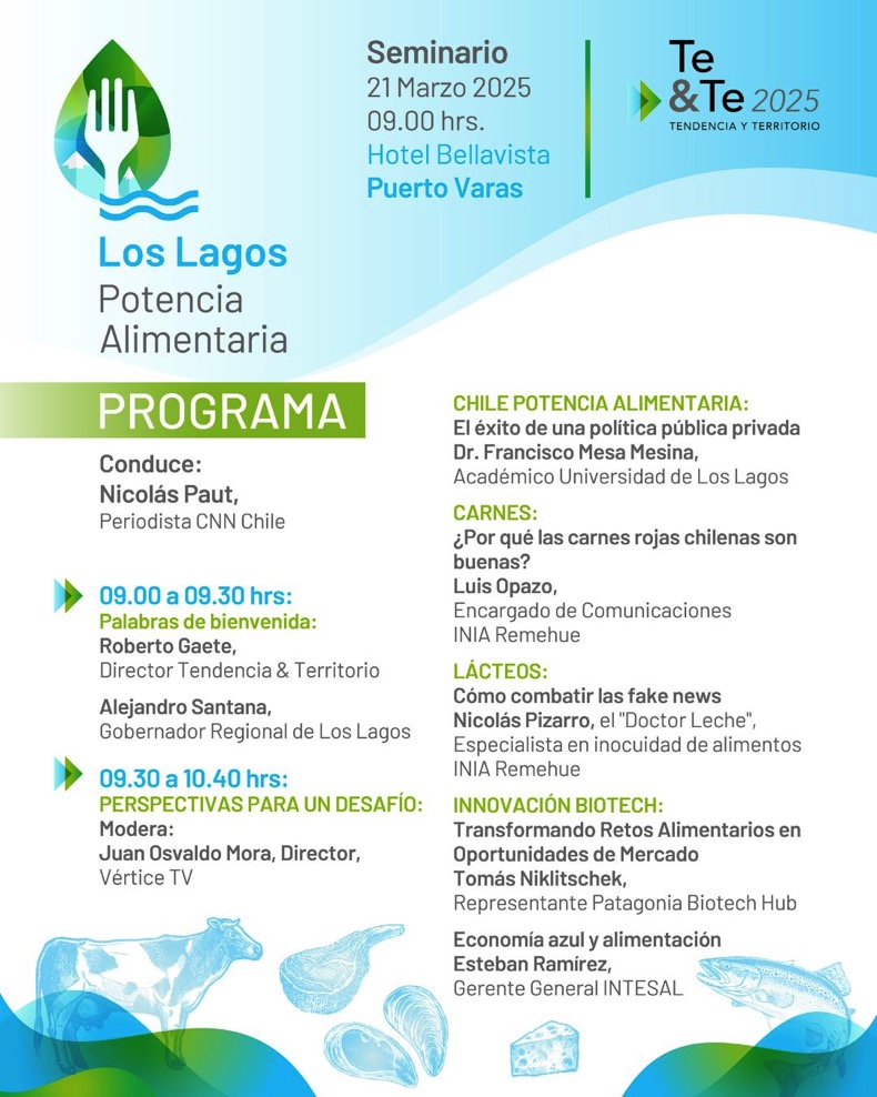 El seminario fue organizado por Tendencias y Territorios, bajo la dirección del periodista Guillermo Gaete, con el objetivo de reflexionar sobre las proyecciones de la Región de Los Lagos como una potencia mundial en exportación de alimentos.
