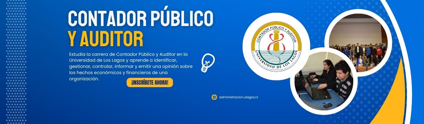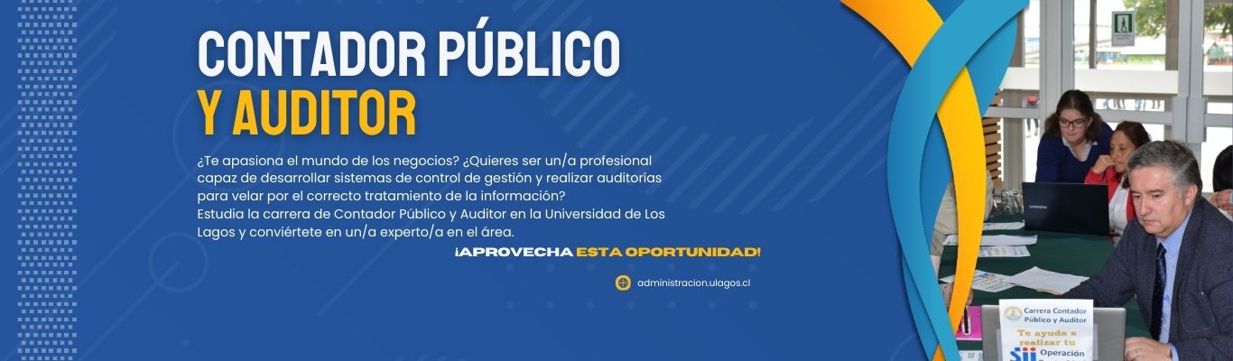 El / la Contador / a Público / ay Auditor / a de la Universidad de Los Lagos es un / a profesional capacitado para ejercer y cautelar el control en todos los niveles de las organizaciones, con objetividad, independencia, estricto apego a los principios éticos y normas que rigen sus actividades, ejerciendo competencias en áreas funcionales de contabilidad, auditoría técnicas, tributaria, gestión y finanzas. Este profesional tiene la capacidad de analizar condiciones, así como factores críticos en los recursos existentes en las organizaciones y su entorno, buscando información necesaria que, permitir diagnosticar, proponer y gestionar soluciones para una adecuada toma de decisiones, aportando al desarrollo social y empresarial en un contexto local y globalizado.